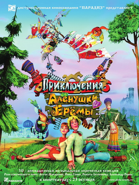 Название: Приключения Алёнушки и Ерёмы Оригинальное название: Приключения Алёнушки и Ерёмы Год выхода: 2008 Жанр: семейный, мультфильм Режиссер: Георгий Гитис В ролях: Антон Макарский, Инна Гомес, Рената Литвинова, Наталия Щукина, Сергей Чонишвили, Александр Наумов, Евгений Воскресенский, Александр Пожаров, Вячеслав Гришечкин, Александр Ревва Описание: Русь. Времена неизвестны. Однажды по дороге в гости к тетке Ефросинье красавица Аленушка попадает в дупло чудесного дерева, где таинственная незнакомка дарит ей волшебные яблоки. Не зная их магической силы, Алена приносит их в терем царя Дормидонта. А в это