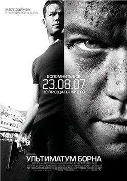 Информация о фильме Название: Ультиматум Борна Оригинальное название: The Bourne Ultimatum Год выхода: 2007 Жанр: боевик, триллер, драма, приключения, детектив Режиссер: Пол Гринграсс В ролях: Мэтт Дэймон,Джулия Стайлз,Дэвид Стрэтэйрн,Скотт Гленн,Пэдди Консидайн,Эдгар Рамирез,Альберт Финни,Джоан Аллен,Том Галлоп,Кори Джонсон,... Кол...во партов: 11 Залито на: Rapidshare О фильме: Он хотел одного — исчезнуть. Вместо этого за Борном теперь охотятся люди, которые сделали его таким, какой он есть. Он потерял память и человека, которого он любил. Но его не удается сдержать даже новому поколению профессиональных убийц. У него только одна цель: вернуться к началу и узнать кем он был, Джейсон Борн. Он меч
