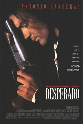 Информация о фильме Название: Отчаянный Оригинальное название: Desperado Год выхода: 1995 Жанр: Триллер Боевик Приключения Режиссер: Роберт Родригес /Robert Rodriguez В ролях: Антонио Бандерас /Antonio Banderas, Сальма Хайак /Salma Hayek, Жоаким де Альмейда /Joaquim de Almeid О фильме: Исключительно стильный и очень смешной фильм Роберта Родригеса. Можно сказать, полуримейк-полусиквел его же первого фильма El Mariachi. У музыканта-марьячи (Антон Бандерас) злые люди, нехорошие торговцы наркотиками, убили даму сердца. После чего на протяжении всего фильма, и особенно - в финале, агрессивно настроенный музыкантик заставляет всех негодяев об этом горько пожалеть. В общем и целом - все как положено: одинокая красавица и
