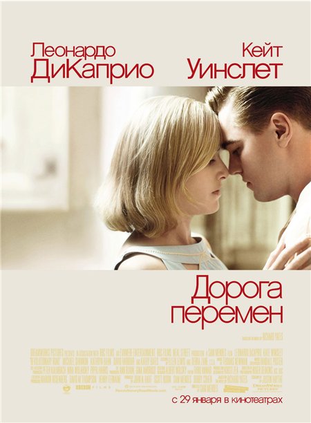Название: Дорога перемен Оригинальное название: Revolutionary Road Год выхода: 2008 Жанр: Мелодрама, драма Режиссер: Сэм Мендес В ролях: Леонардо ДиКаприо, Кейт Уинслет, Кэти Бейтс, Майкл Шэннон, Кэтрин Хан, Зое Казан, Райан Симпкинс, Ти Симпкинс, Дэвид Харбор, Адам Муччи Описание: Действие картины проходит в середине 50-х годов, главные герои — члены небольшой провинциальной семьи. Фрэнк и Эйприл Уиллер считают себя семьей среднего класса, непохожей на остальные семьи, и испытывают огромное желание перебраться в Париж. Однако судьба приготовила для супругов ряд неприятных сюрпризов… Рейтинг IMDB: