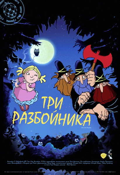 Название: Три разбойника Оригинальное название: Die Drei Rauber Год выхода: 2007 Жанр: Комедия, семейный, мультфильм Режиссер: Хайо Фрайтаг В ролях: Хоаким Крол, Чарли Хюбнер, Катарина Тальбах, Елена Крейл, Максимилиан Рока Юнгфер, Эрвин Ледер Описание: Жили-были три безжалостных разбойника, которые бродили по темным лесам, устраивали засады и грабили невинных путешественников. Однажды они встретили сиротку Тиффани, которая перевернула их размеренную разбойничью жизнь с ног на голову. Рейтинг IMDB: 7.0/10 (78 votes) Выпущено: Германия, Animation X Продолжительность: 01